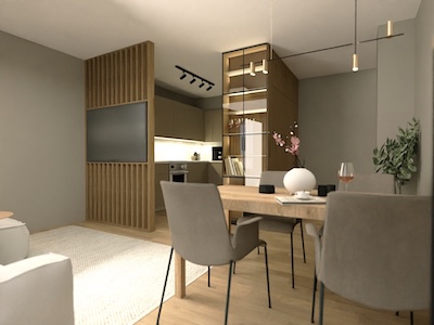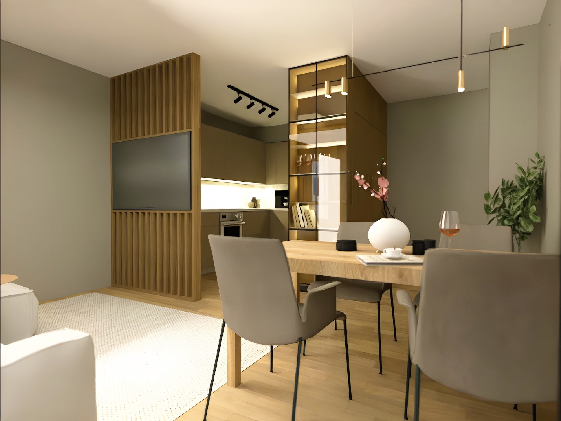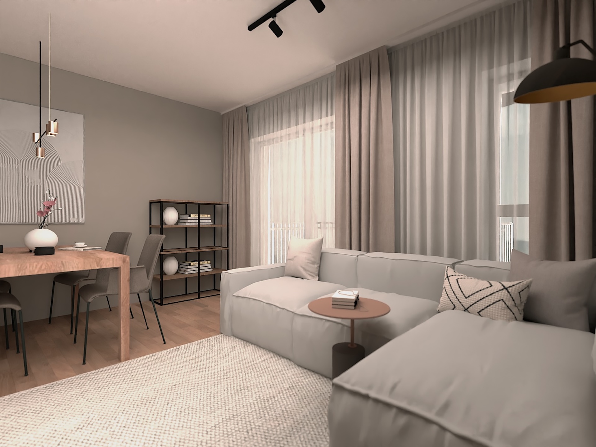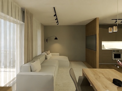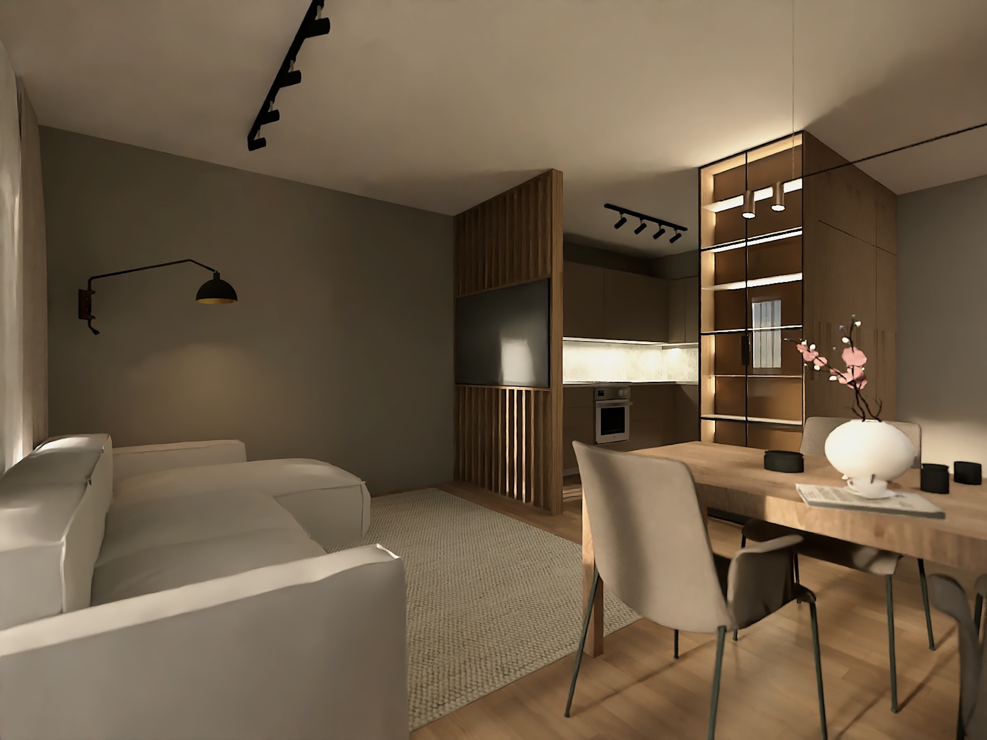 For this apartment, we aimed to create a cozy and functional space that combines the kitchen and living room while maintaining a feeling of space and airiness. The clients wanted a comfortable zone for evenings together and meetings with the family, despite the limited space.