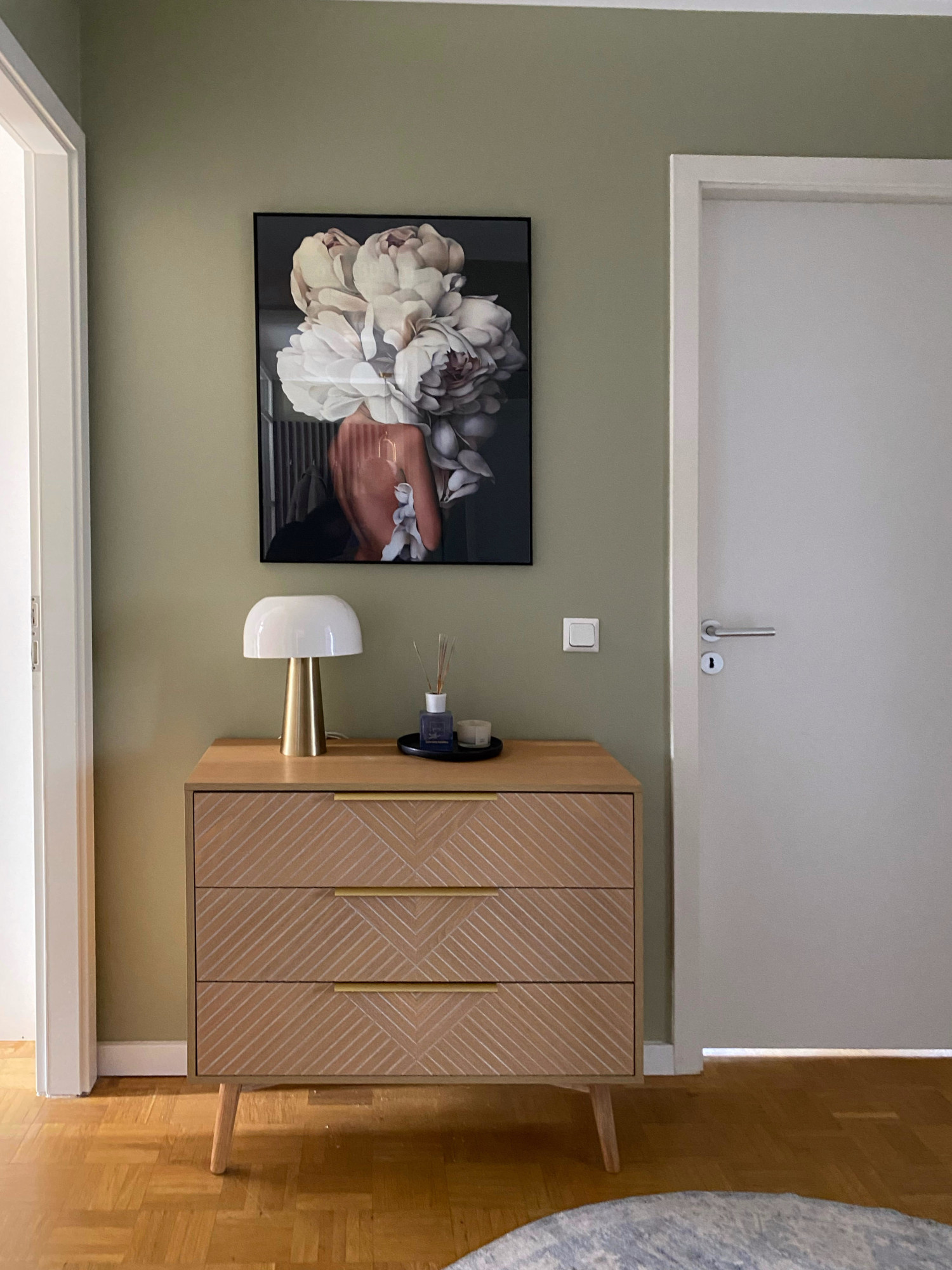 Im Flur lösten wir das Problem des fehlenden Stauraums durch die Installation von praktischen und ästhetischen Kommoden. Dies ermöglicht die ordentliche Aufbewahrung von Oberbekleidung, Schuhen und Accessoires. Ein großer Ganzkörperspiegel erweitert optisch den Raum und bringt zusätzliches Licht hinein.